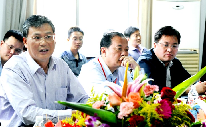 2010年10月3日,中海油总公司党组成员、副总经理,校友李凡荣同志来校视察(前排左一)。
